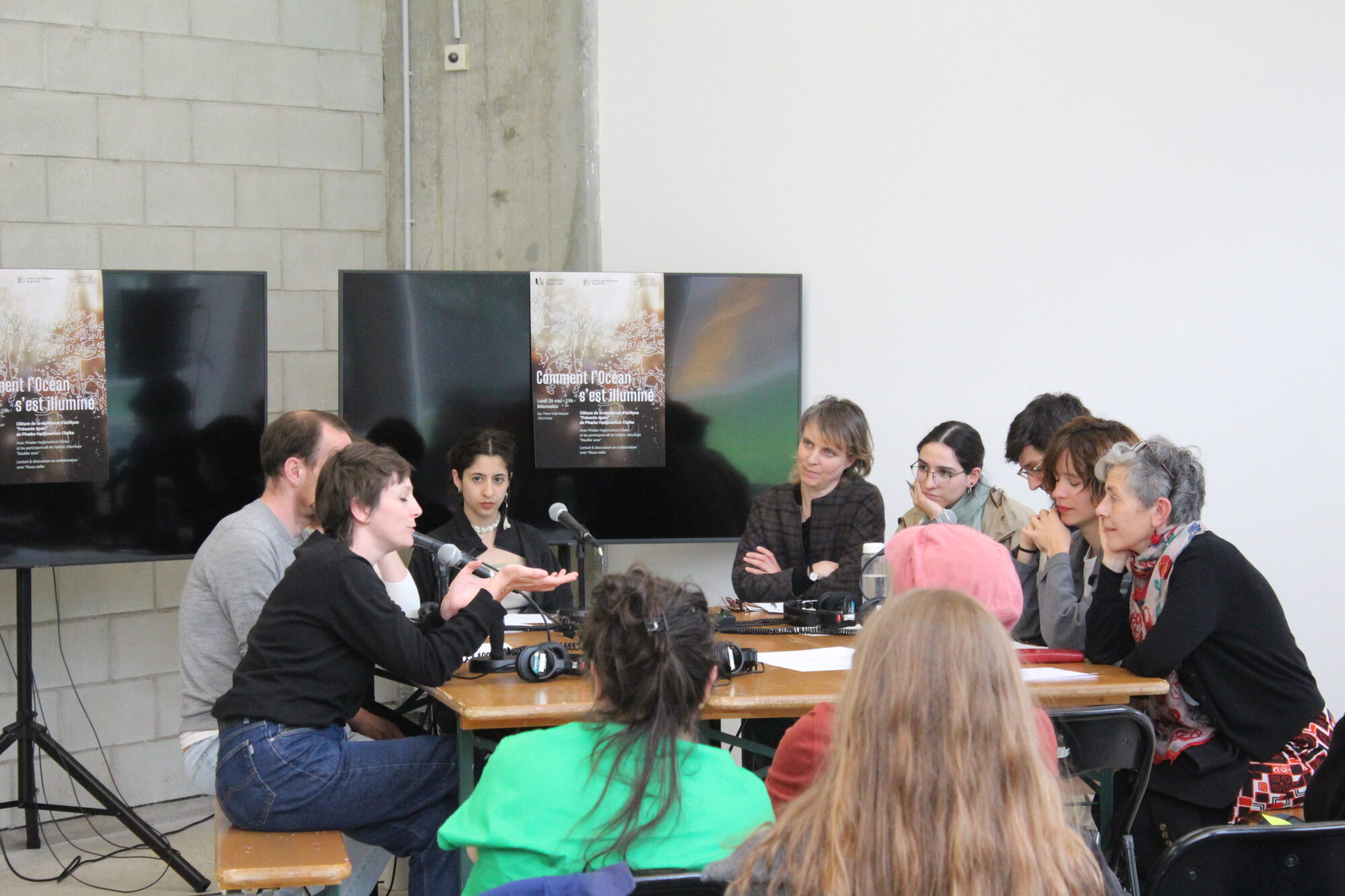 Research-creation seminar with Phoebe Hadjimarkos Clarke, Pablo Réol, David Posth-Kohler, Clara Aubonnet, Guillaume Larregle, and Baptiste Miremont.