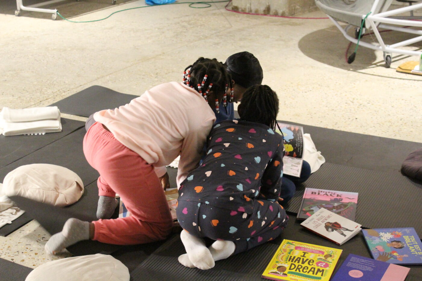 Improvisée, joyeuse et multiforme, « l’Assemblée des enfants » a connu depuis ses débuts : plusieurs parties sauvages de cache-cache parmi les œuvres, divers goûters d’anniversaire ou distributions de bonbecs’, au moins deux propositions de nouveaux logos pour Bétonsalon, une authentique chasse aux œufs de Pâques, plusieurs constructions de cabanes réelles et imaginaires, des ateliers de faussaires spécialisés dans la reproduction d’œuvres d’art, des lectures collectives, des commentaires voire même des caviardages du livre d’or, une soirée pyjama mémorable, de nombreux fous rires et quelques colères évidemment. « L’Assemblée des enfants » c’est donc tout autant un champ d’exploration collective, un territoire de liberté et un terrain de jeux et de pensées infinis pour elleux et pour nous-mêmes, en tant qu’équipe des publics de Bétonsalon.